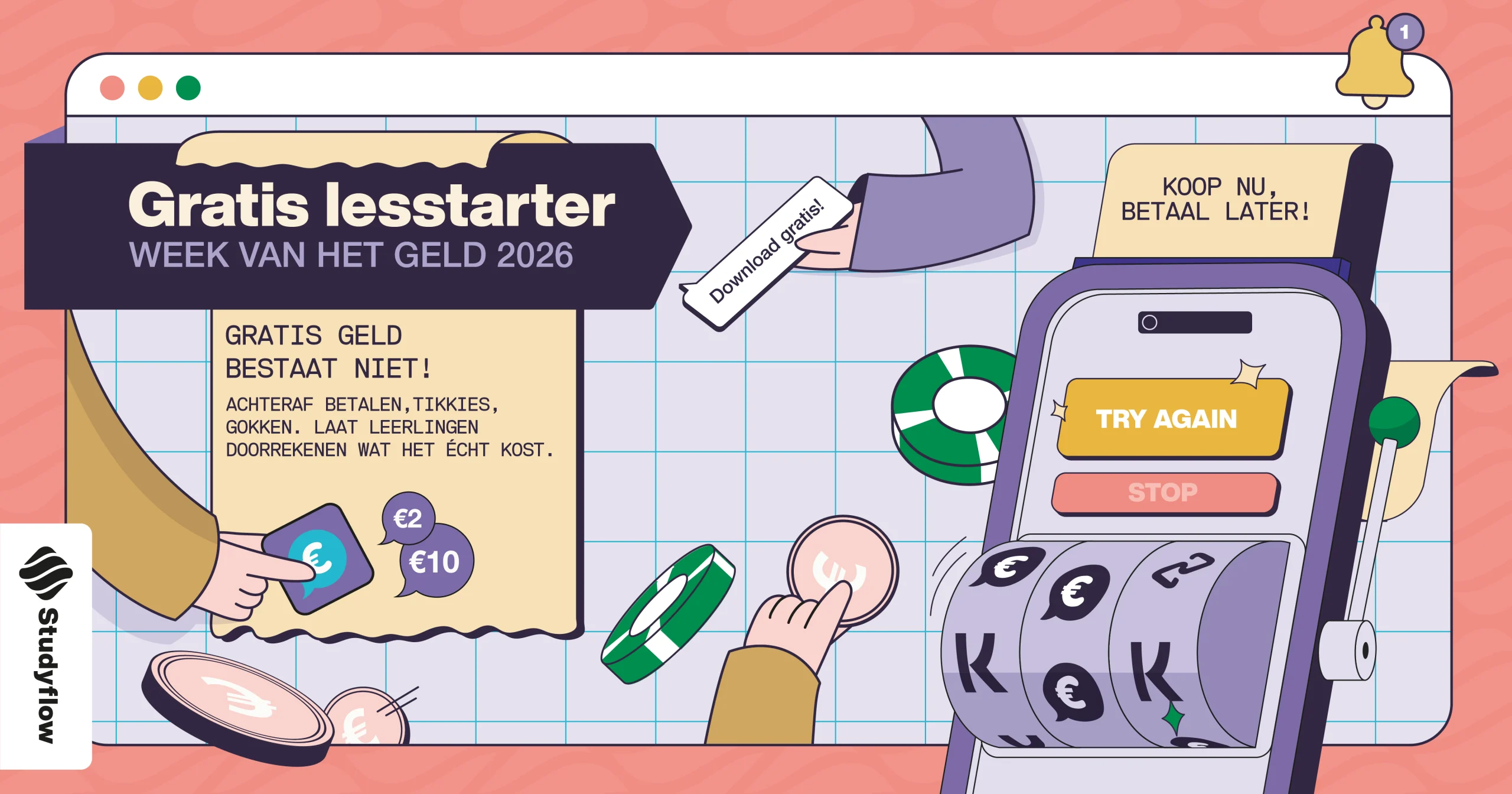 De invalshoek is bewust ā€œgratis geldā€: aantrekkelijk op het eerste gezicht, maar juist interessant zodra je gaat doorrekenen. Daarmee sluit de lesstarter aan op het Week van het geld thema Geldsprookjes, waarin het gaat over verleiding, keuzes en wat cijfers je wel of niet vertellen.